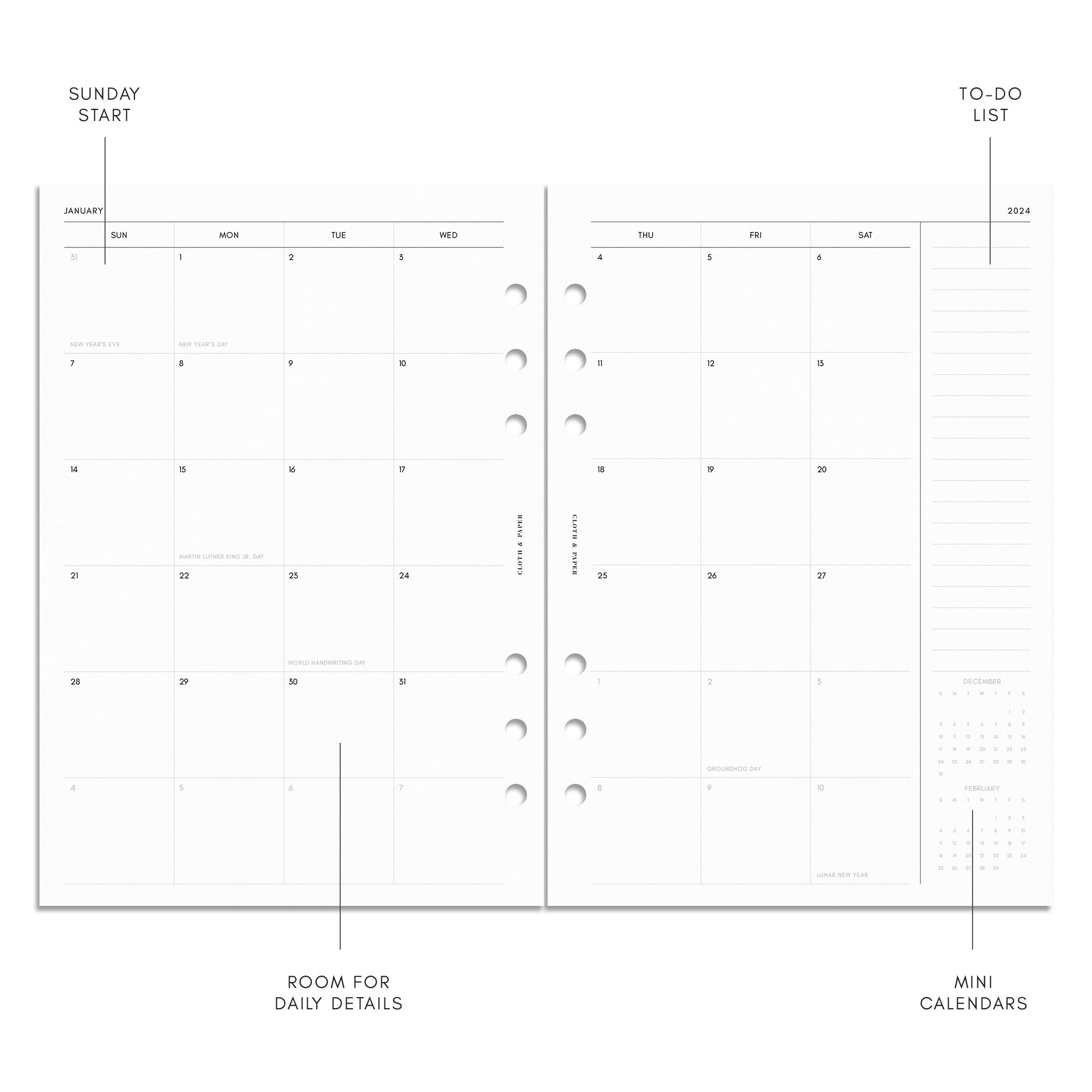 Source : www.amazon.com2024 Dated Planner Inserts | Monthly | Sunday Start | Cloth